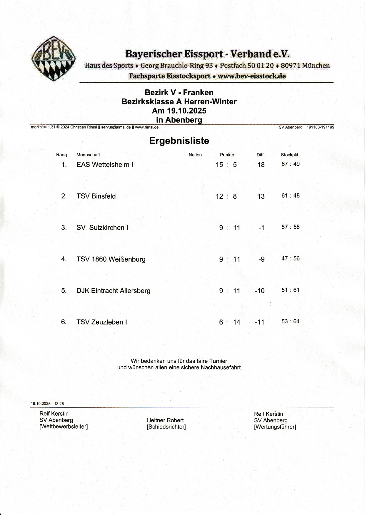 1.Platz steigt in die Bezirksliga des Bezirks VI auf. Da müssen die Aufsteiger im Eisstadion auf Eis spielen. Der Abstieg ist gleitend.