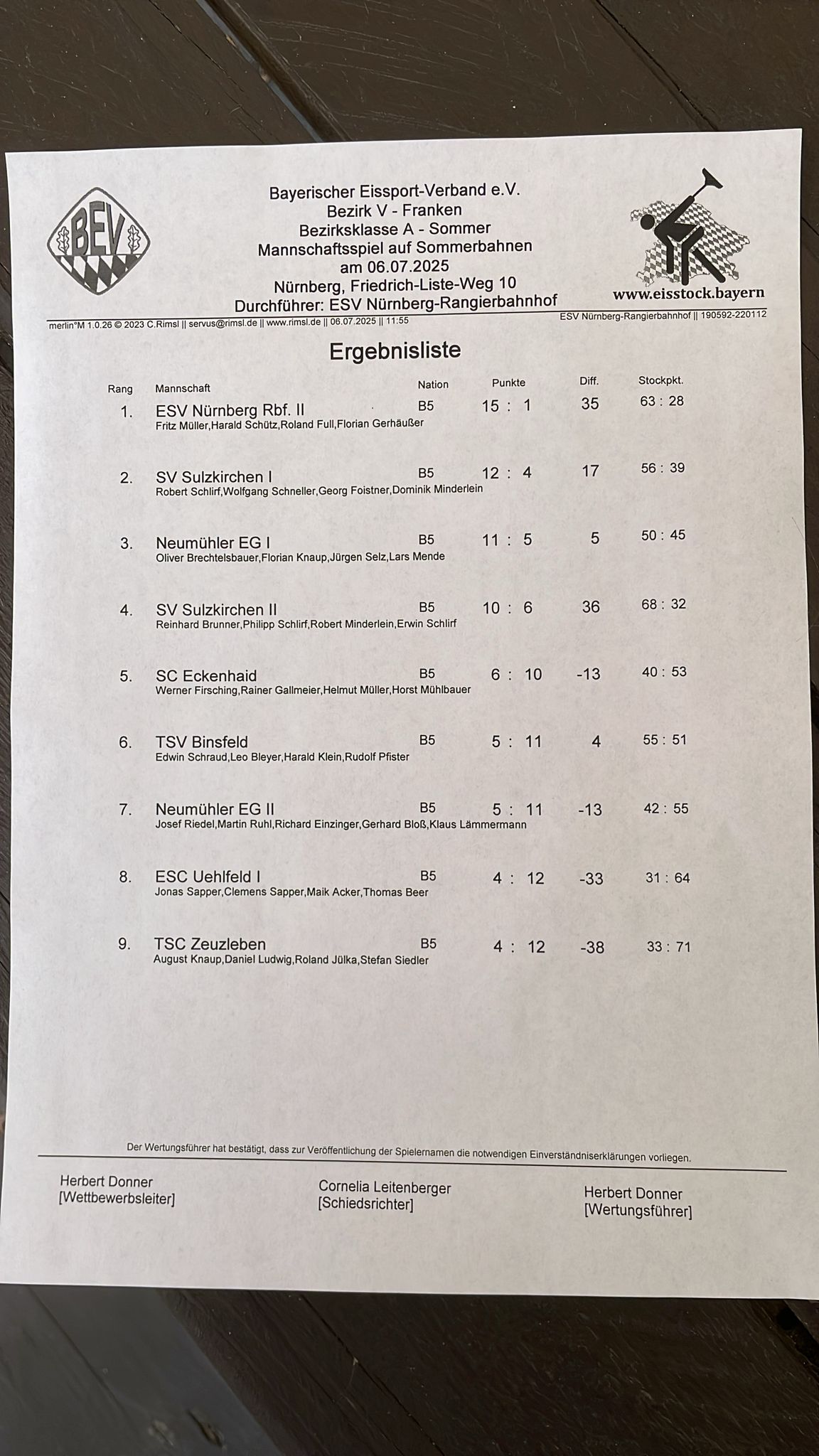 Danke an alle teilnehmenden Mannschaften und den Ausrichter ESV Nürnberg-Rangierbahnhof sowie Glückwunsch an die beiden Aufsteiger.